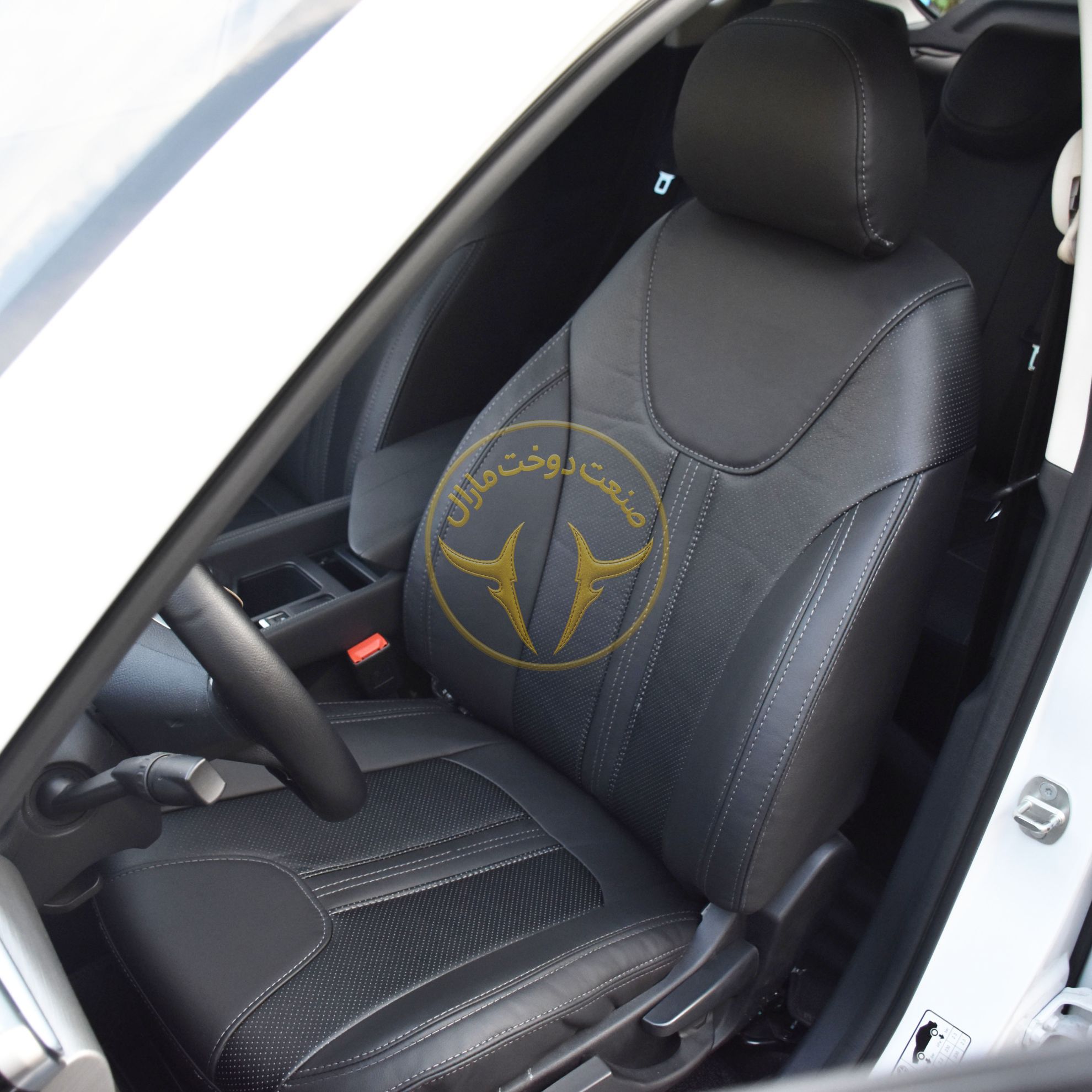 استفاده از چرم ضد تعریق درجه یک که در برابر سایش، لکه و پارگی مقاوم است. بهراحتی با یک دستمال مرطوب تمیز میشود همچنین با طراحی حرفهای با الگوگیری دقیق مطابق با مدل صندلی خودروهای مختلف، نصب راحت و فیت صندلی خودرو.